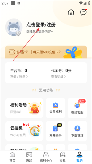 1、在无限游戏盒子首页,点击右下角【我的】,进入个人界面。