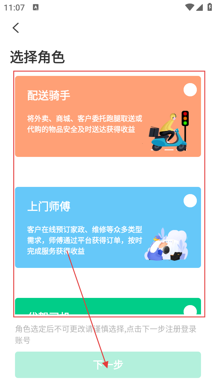 1、在登录页点击【注册账号】,进入角色选择环节,开启注册流程。