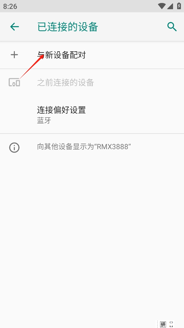 2、在“已连接的设备”页面,点击“与新设备配对”。