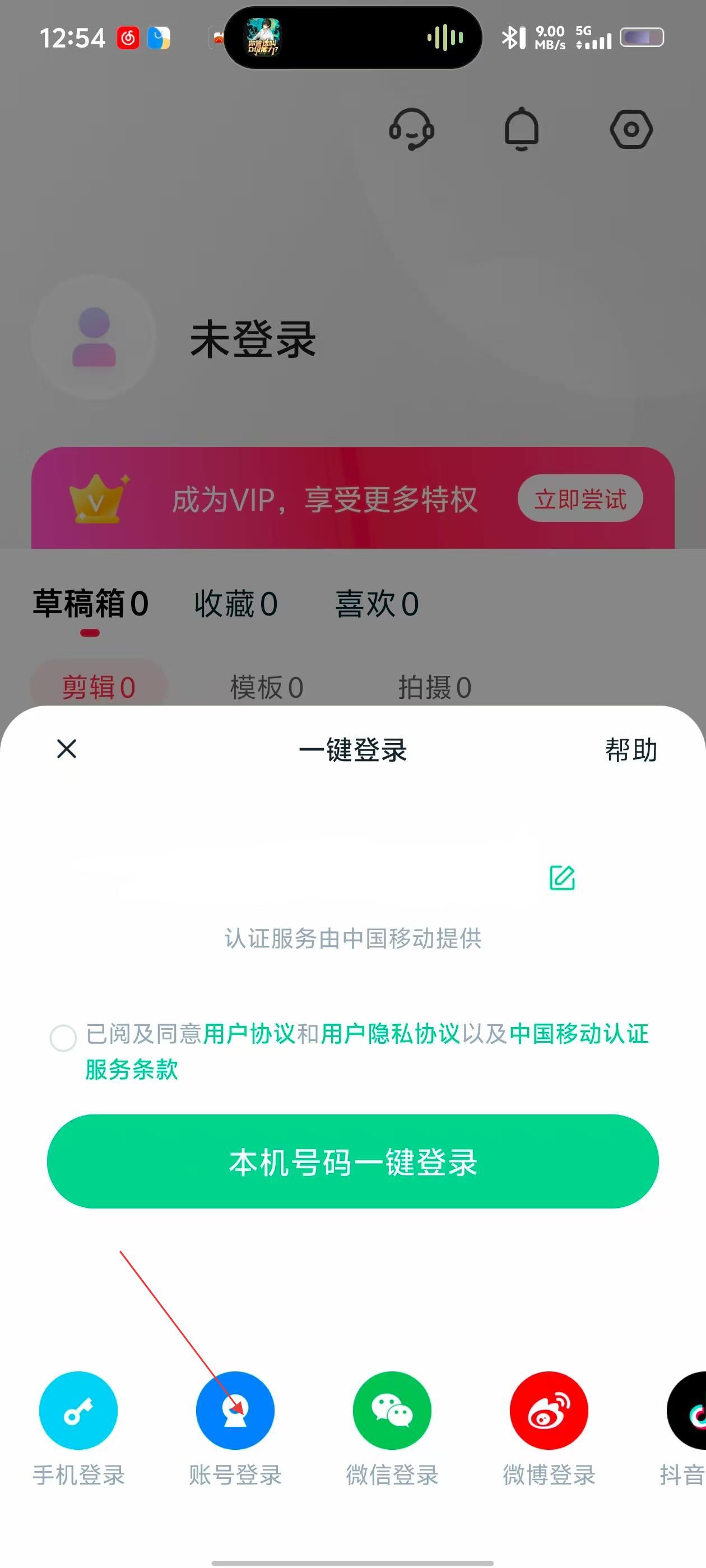 3、在登录选择页面,可选择多种登录方式,若选择【账号登录】,点击该选项。
