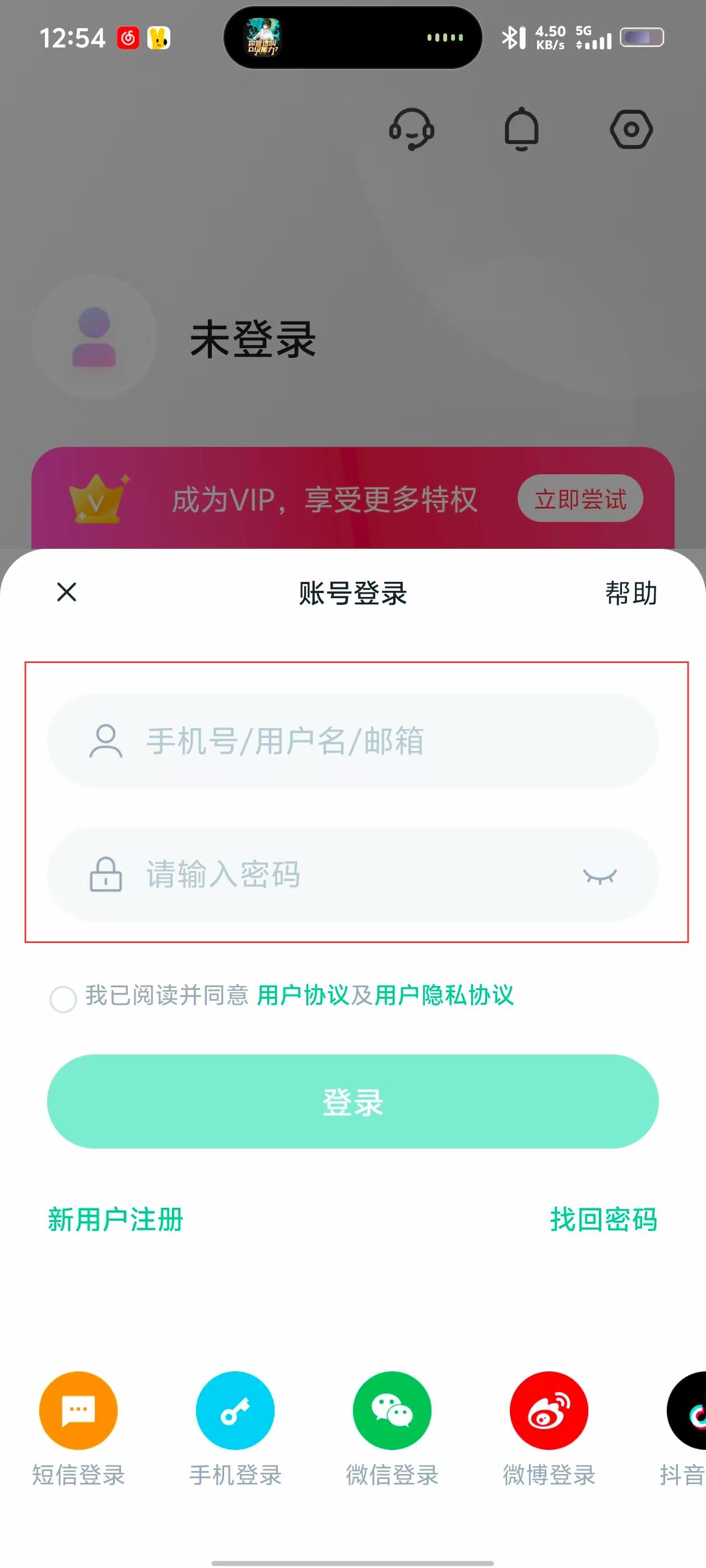 4、进入账号登录页面,在“手机号/用户名/邮箱”输入框中输入账号,然后输入密码,最后点击【登录】按钮,完成登录操作。