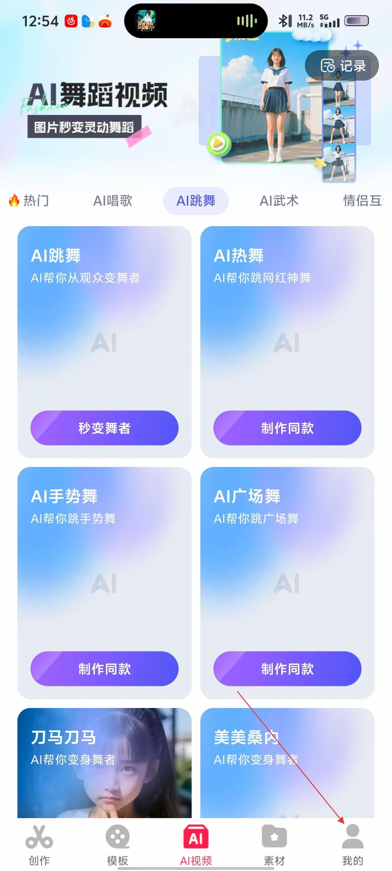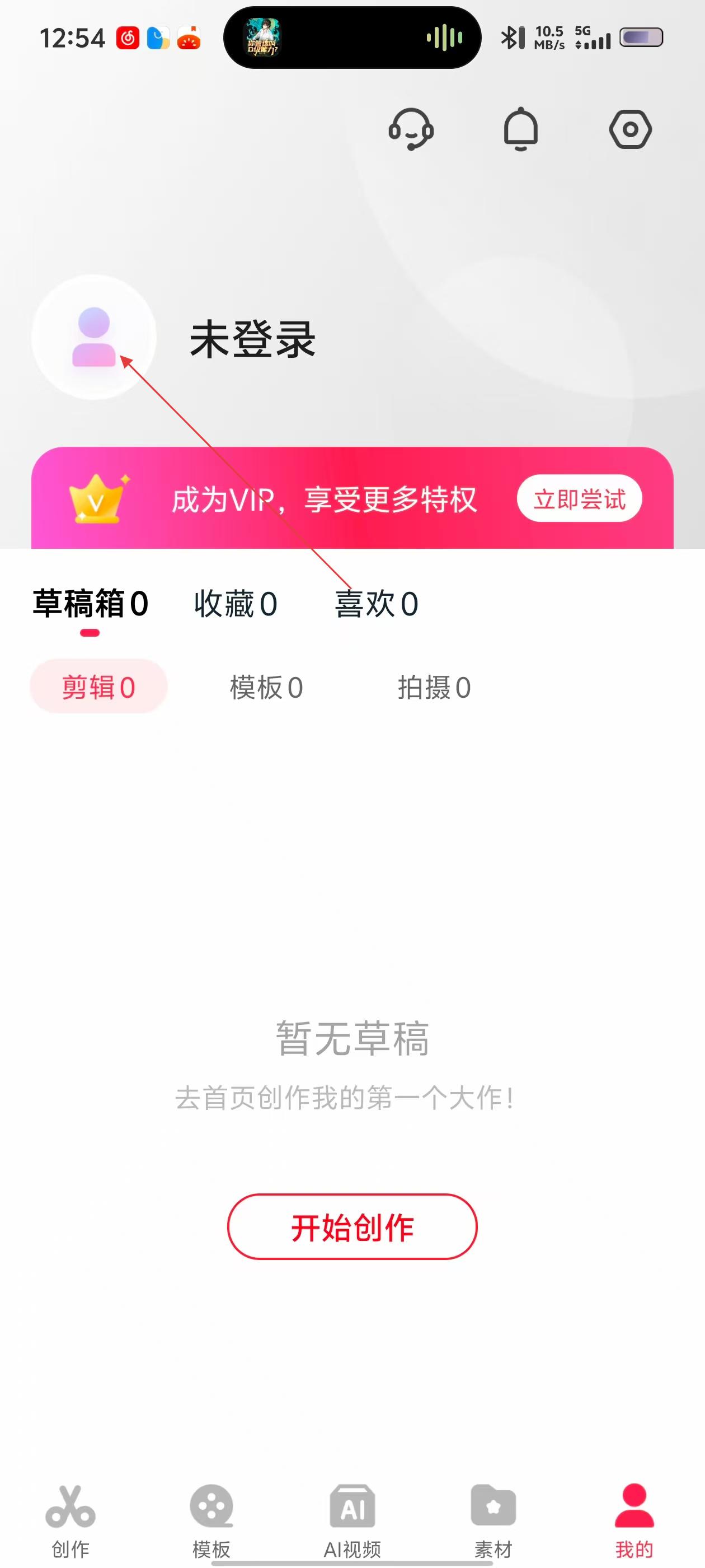 1、打开快剪辑APP,进入主界面后,点击底部导航栏中的【我的】选项。