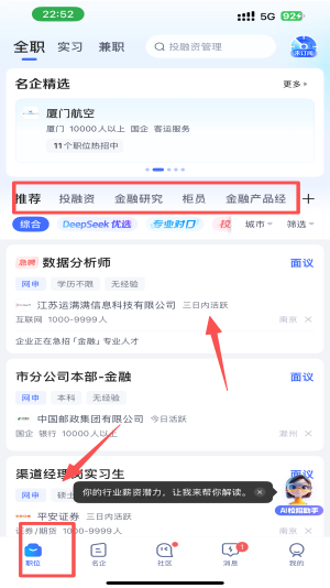 1、选择职位类别:在首页点击“推荐”或“金融研究”等类别,找到感兴趣的职位。