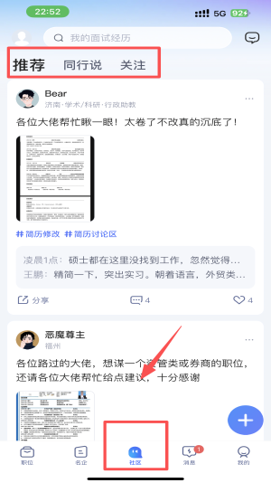 3、访问社区:点击“社区”参与讨论,获取更多职位相关建议。