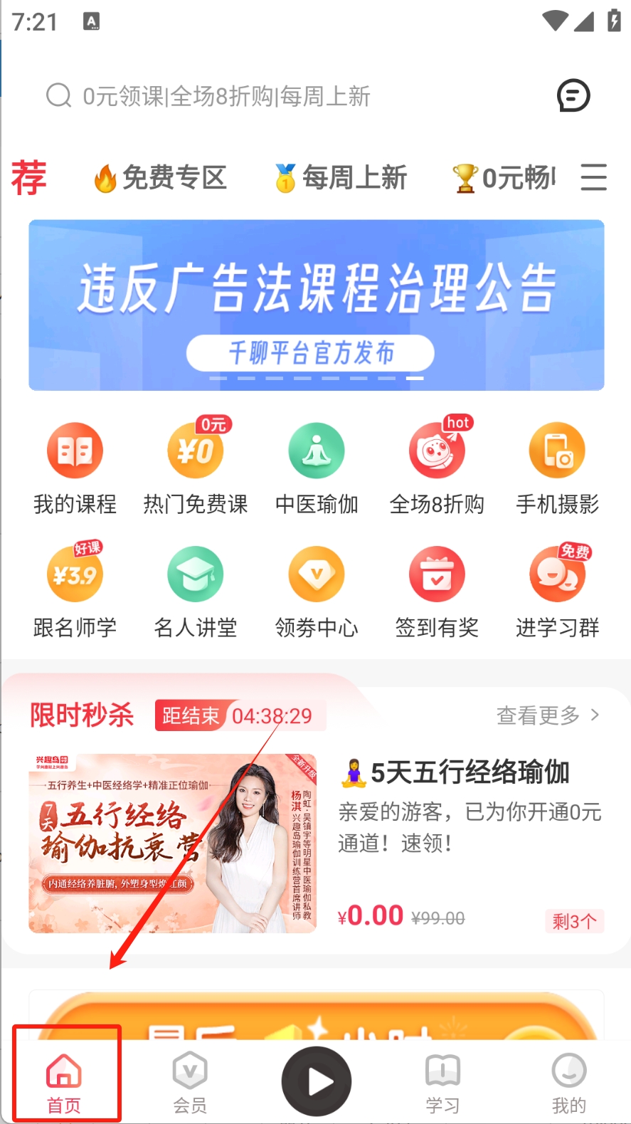 2、选择免费专区:点击“免费专区”浏览免费课程。