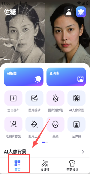 1、在首页选择“AI抠图”或“变清晰”功能,对图片进行编辑处理。