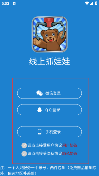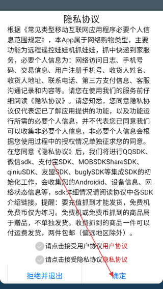 1、打开应用查看协议点击确定。