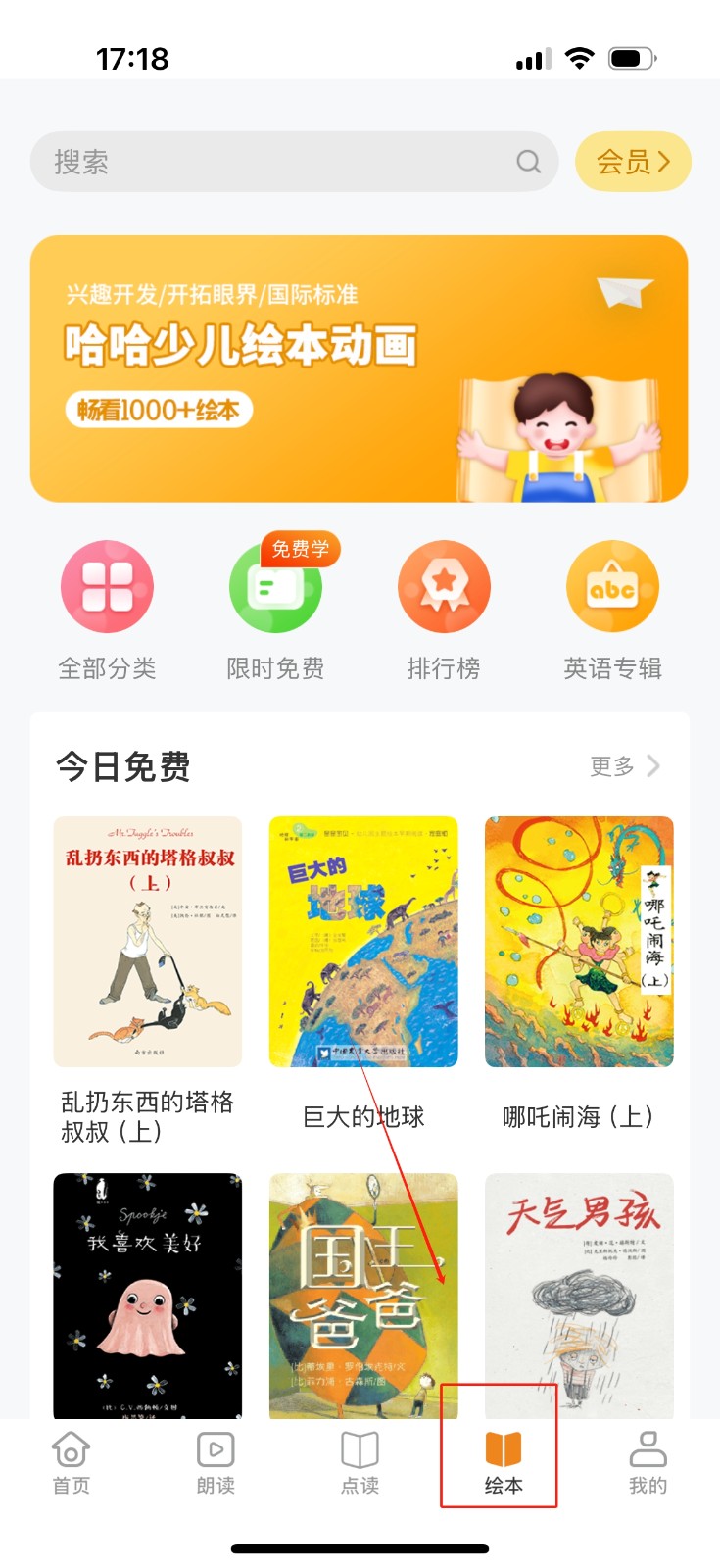 4、点击“绘本”选项,选择并阅读适合的绘本故事。