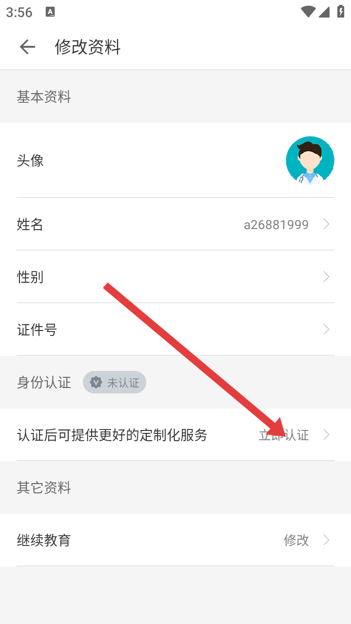 3、在修改资料页面,点击【立即认证】进入身份认证页面,可对头像、姓名、性别、证件号等基本资料进行修改。