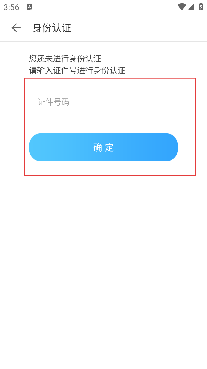 4、在身份认证页面,输入证件号码,点击【确定】即可完成身份认证,认证后可享受更好的定制化服务。