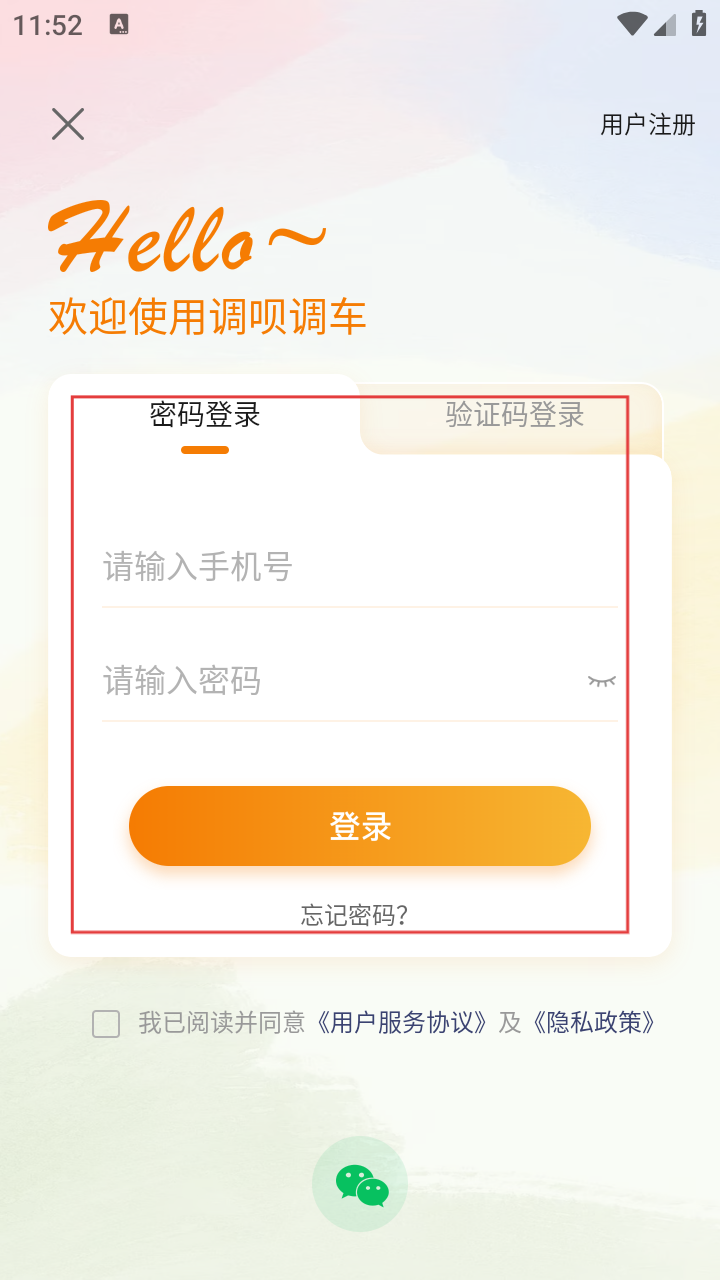 4、跳转登录页,填手机号、密码,勾选协议后点【登录】,完成租车流程。