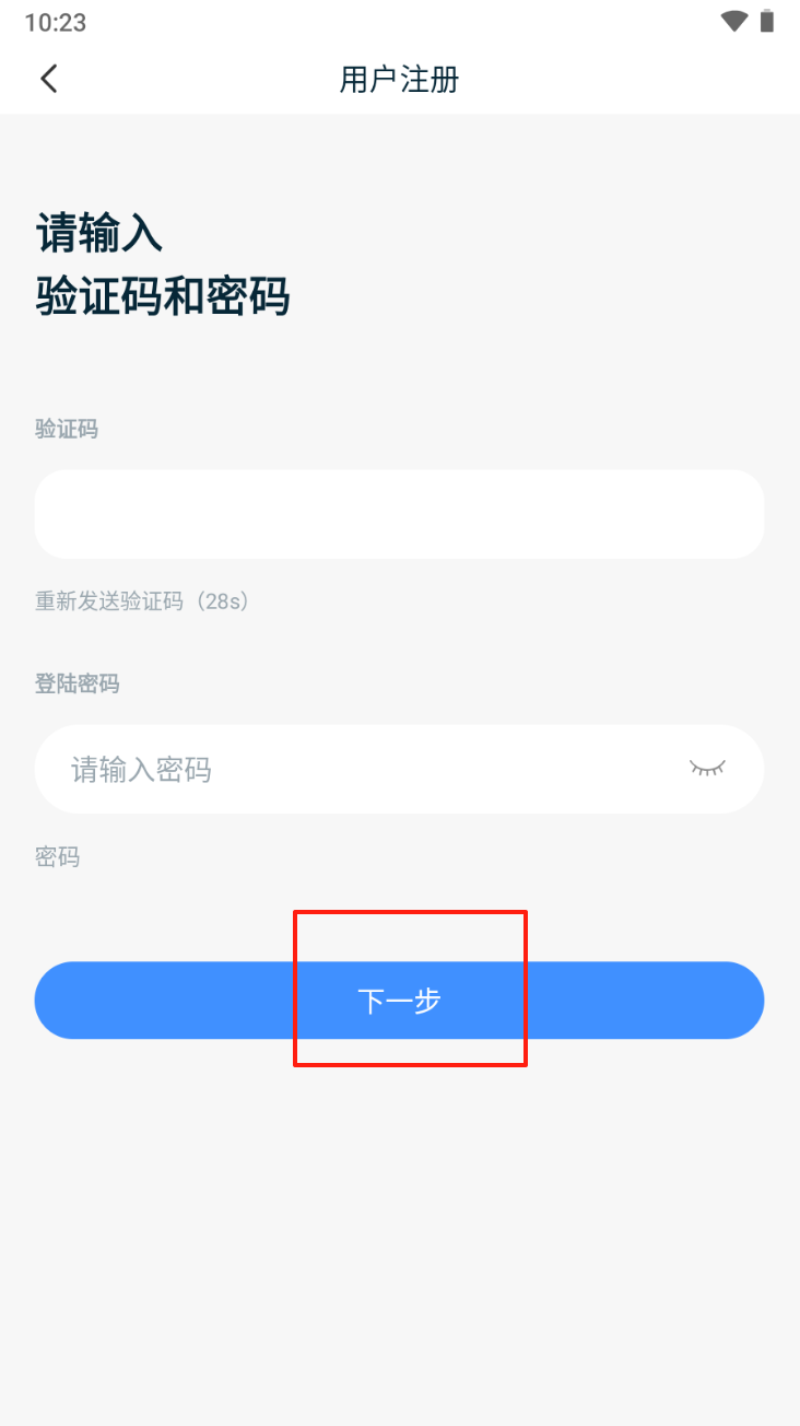 3、输入验证码和密码,点击“下一步”完成注册。确保密码符合要求。