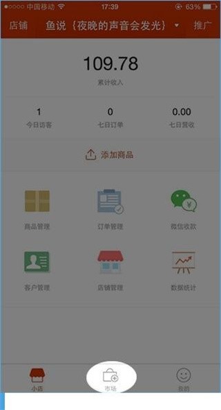 第一步:打开有赞微小店登录,点“市场”按钮。