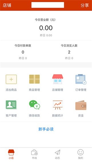 微小店目前功能还是相对简单的,所有可操作的页面都显示在主页。