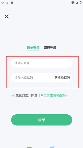3、进入登录界面输入手机号和验证码即可一键注册登录。