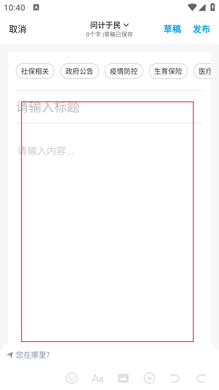 4、跳转至编辑页,填写【标题】与【内容】,确认后点【发布】,即可完成发帖。