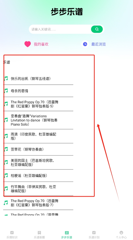 4、最后利用应用中的乐谱资源库,随意挑选感兴趣的乐谱,制定个性化学习计划,进行反复练习,实现技能的有效提升。