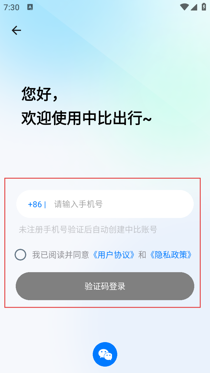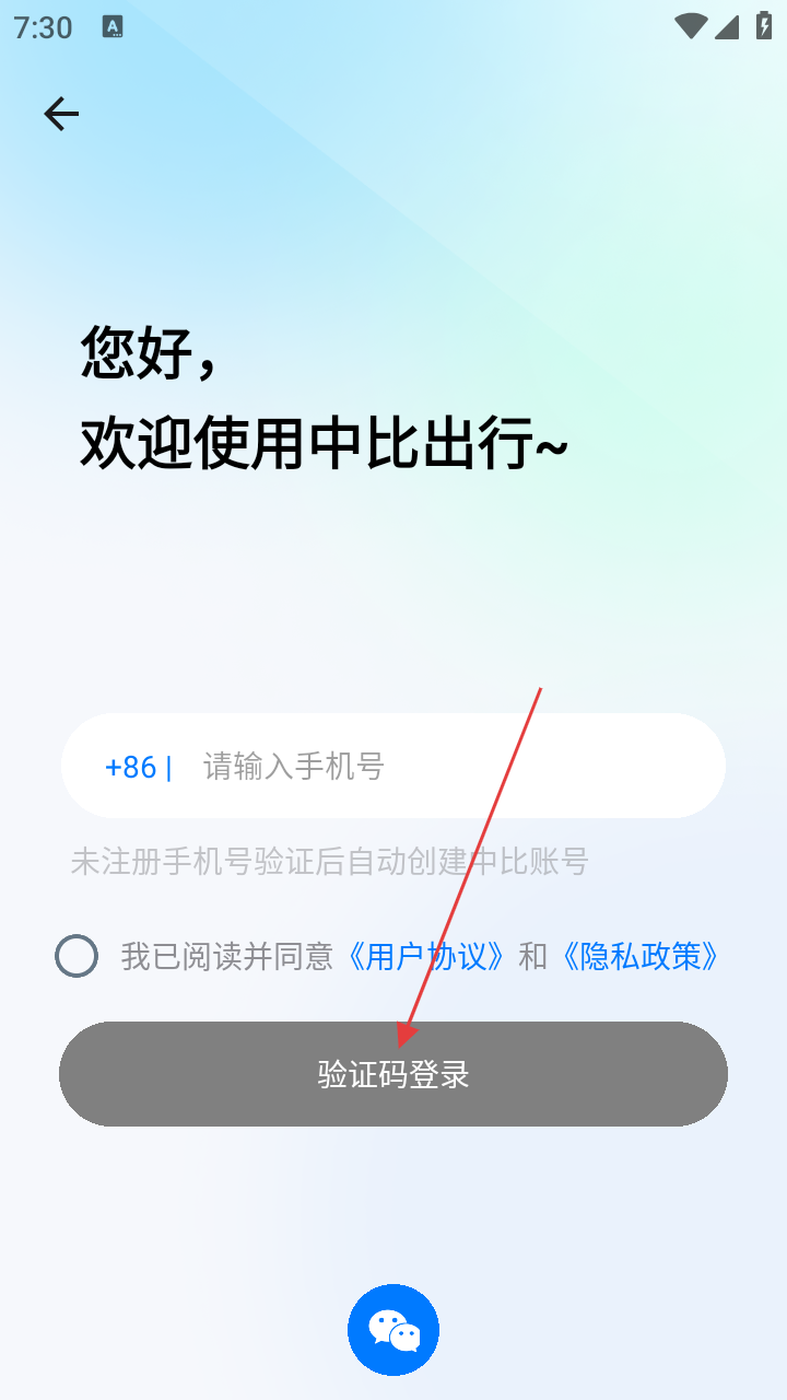 3、进入登录界面,在登录页输入手机号,勾选协议同意条款。