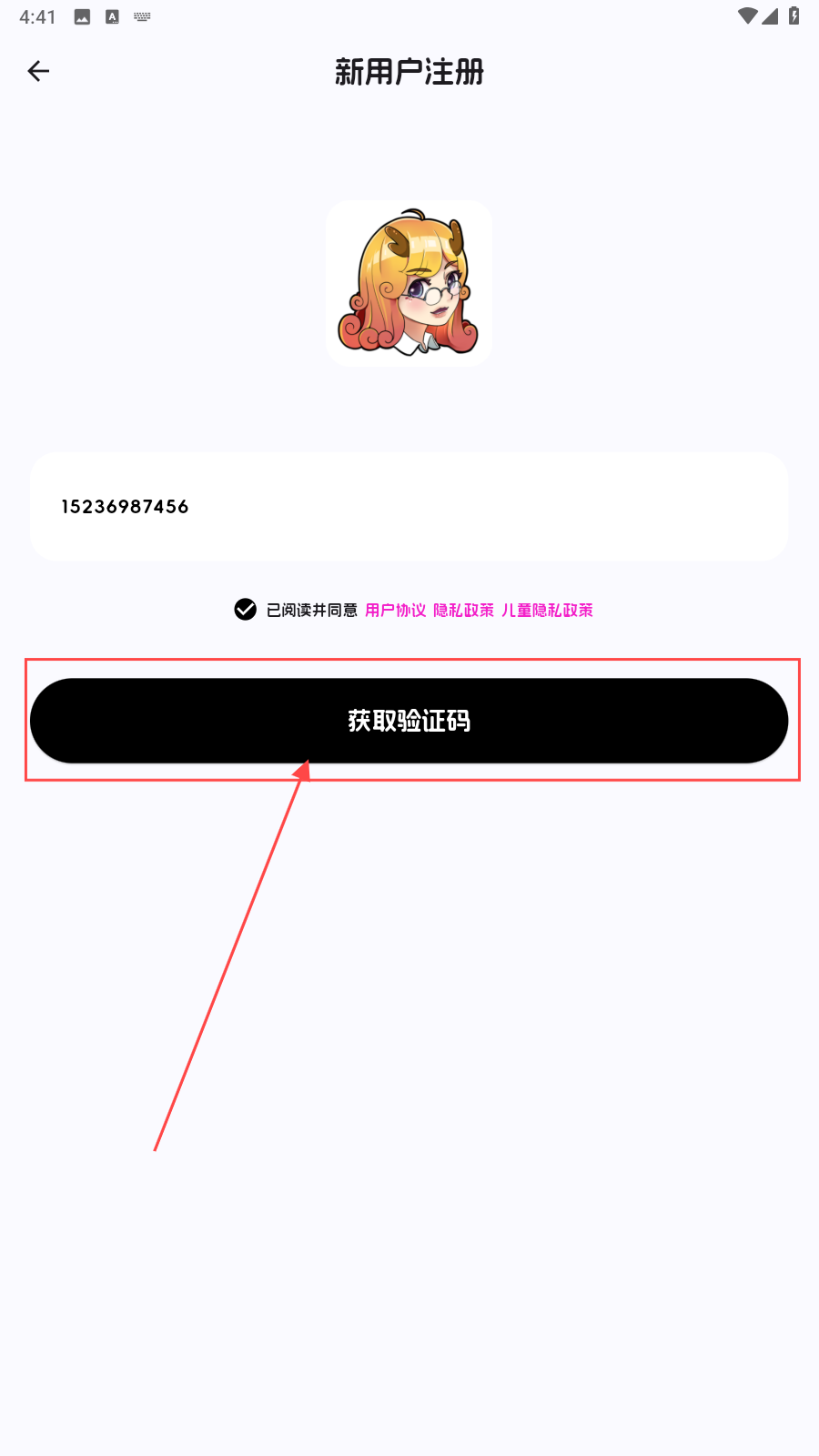 1、打开应用,点击【新用户注册】。