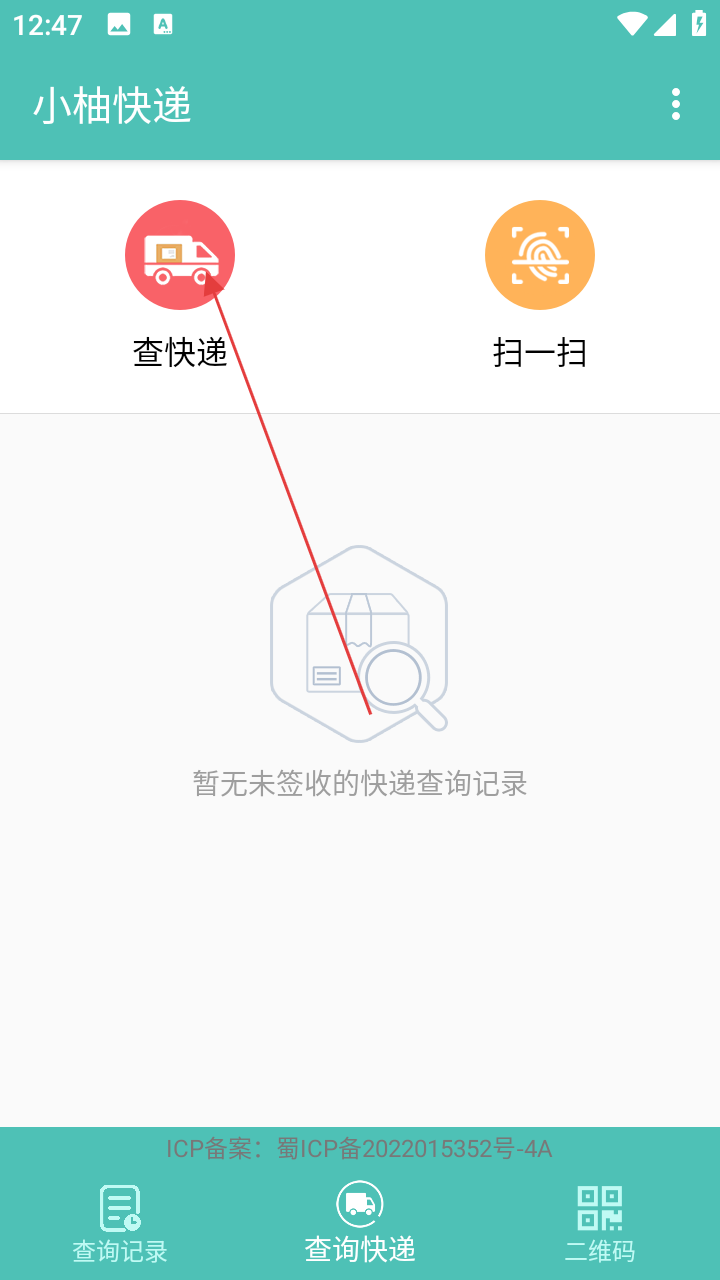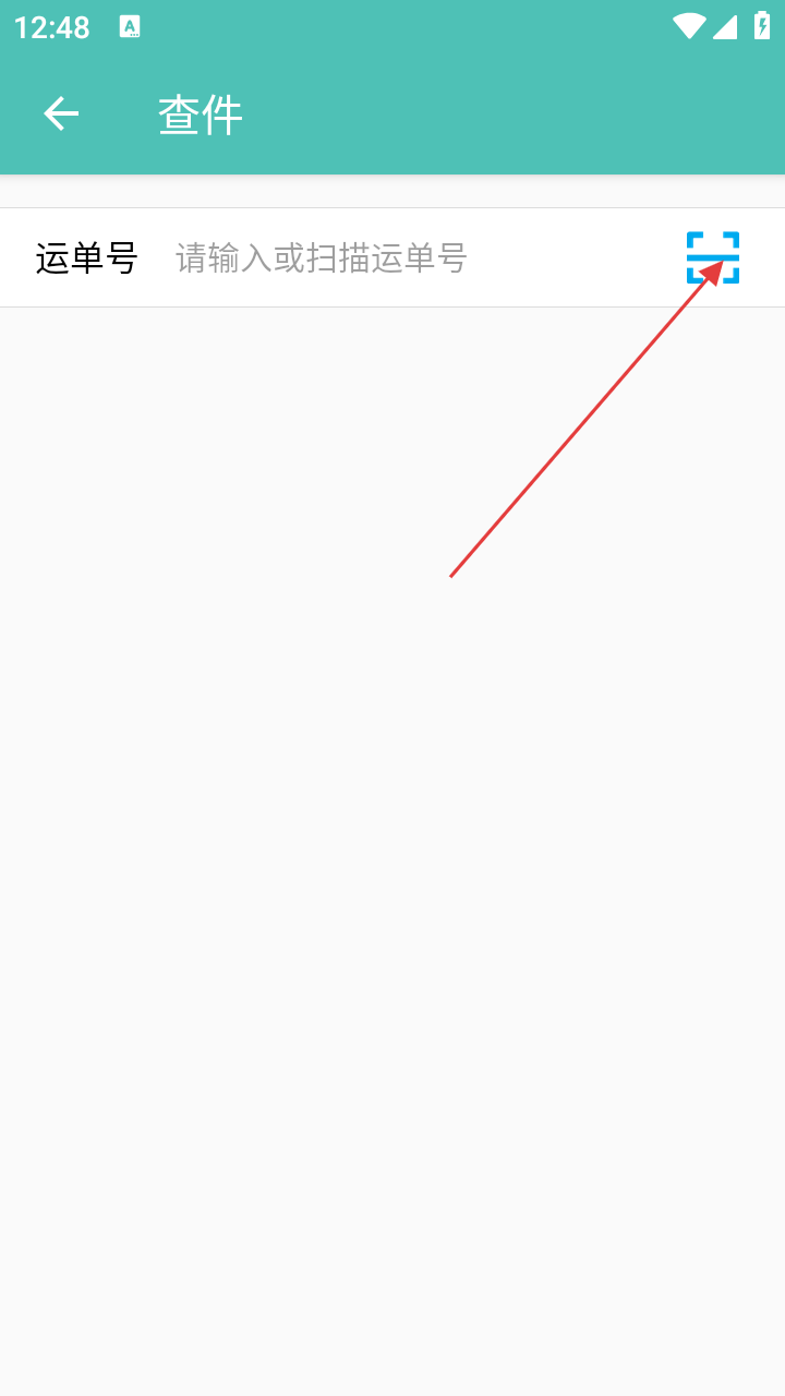3、在【查件】页,点击运单号右侧扫码图标,开启扫码查件模式。