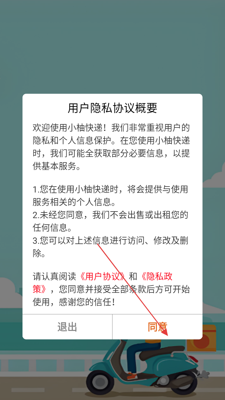 1、首次使用会弹出【用户隐私协议概要】,点击【同意】,接受协议后可使用服务 。