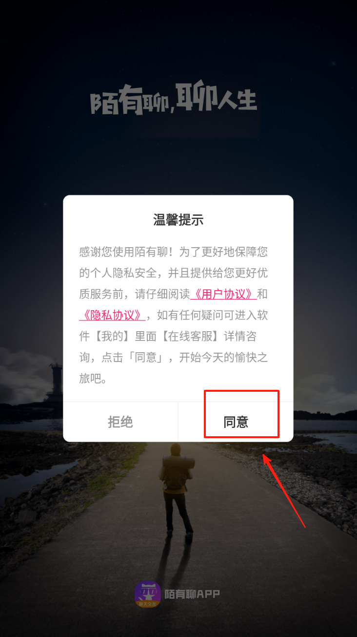 1、在欢迎页面,点击“同意”按钮,表示您已阅读并同意用户协议和隐私政策。