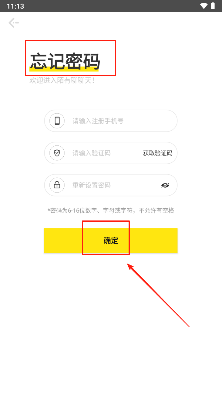 4、在忘记密码页面,输入手机号和验证码,设置新密码后点击“确定”按钮重置密码。