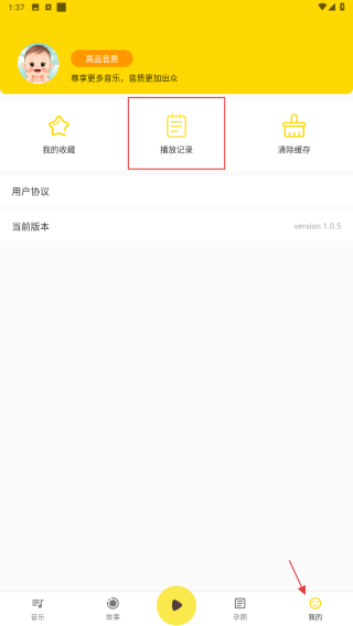 3、点击APP底部【我的】进入个人中心再点击【播放记录】查看之前播放过的音乐和故事。