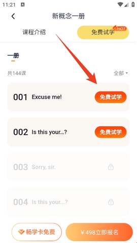 3、当然大家也可以先“免费试学”,在试学完之后,再选择是否报名。