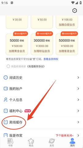 2、然后在该页面找到“离线缓存”。