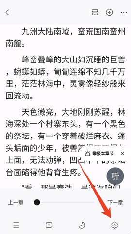 请在小说阅读页单击页面中部,调出设置菜单栏,