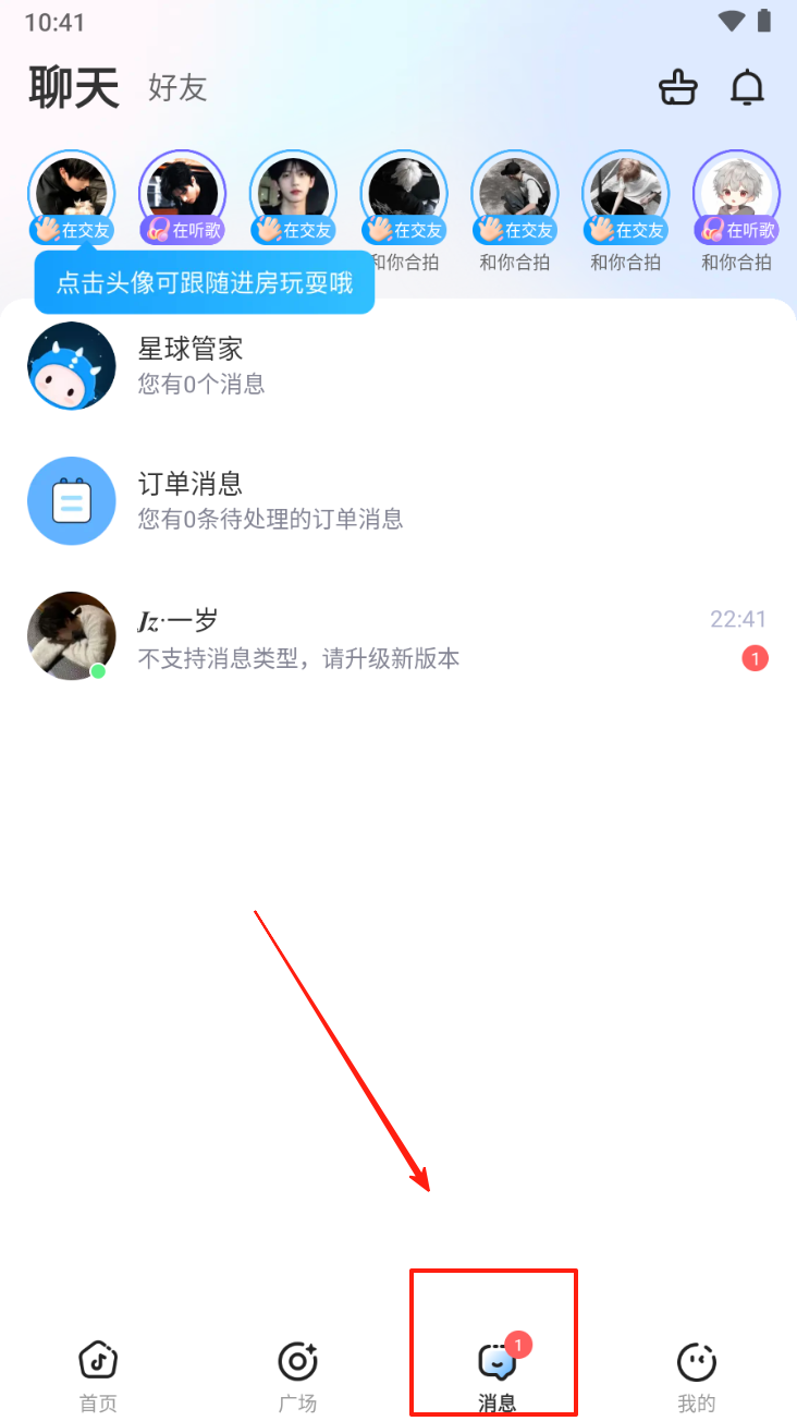 4、在聊天页面,点击底部导航栏中的“消息”图标,查看和管理好友消息。