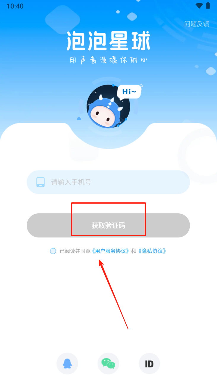 1、在登录页面输入手机号,点击“获取验证码”按钮,完成验证后登录。