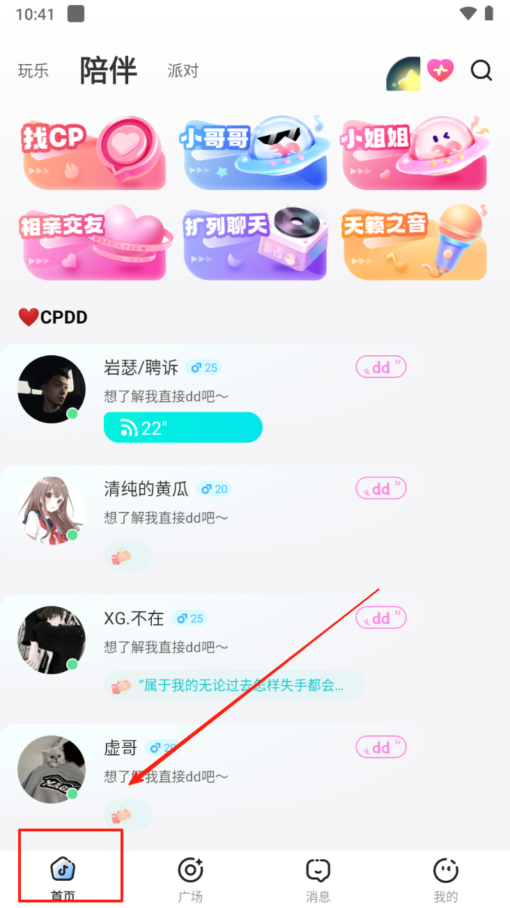 2、进入首页后,点击底部导航栏中的“首页”图标,浏览推荐内容。