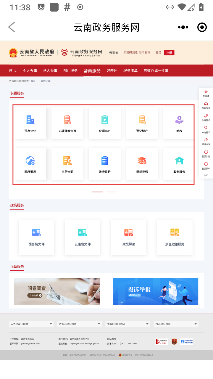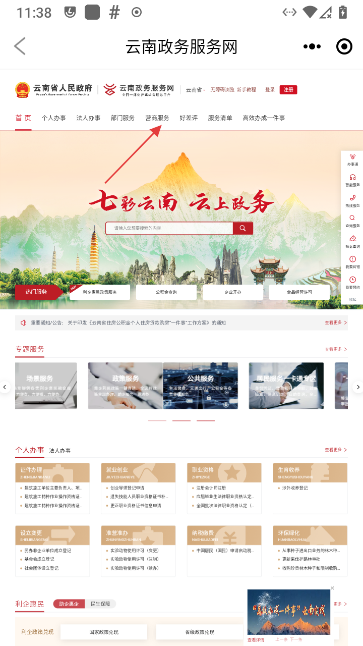 3、进入云南政务服务网页面,点击自己想要办理的业务。