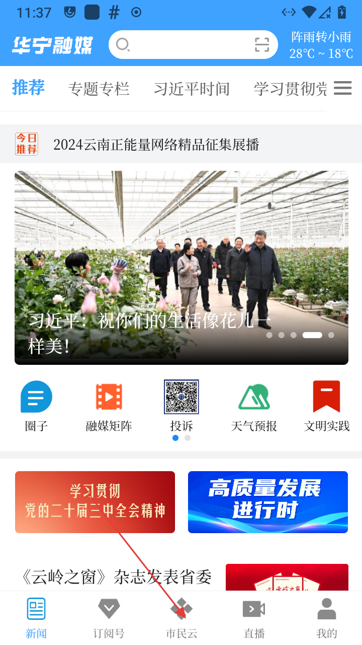 1、打开i华宁进入首页,点击【市民云】进入服务页面。