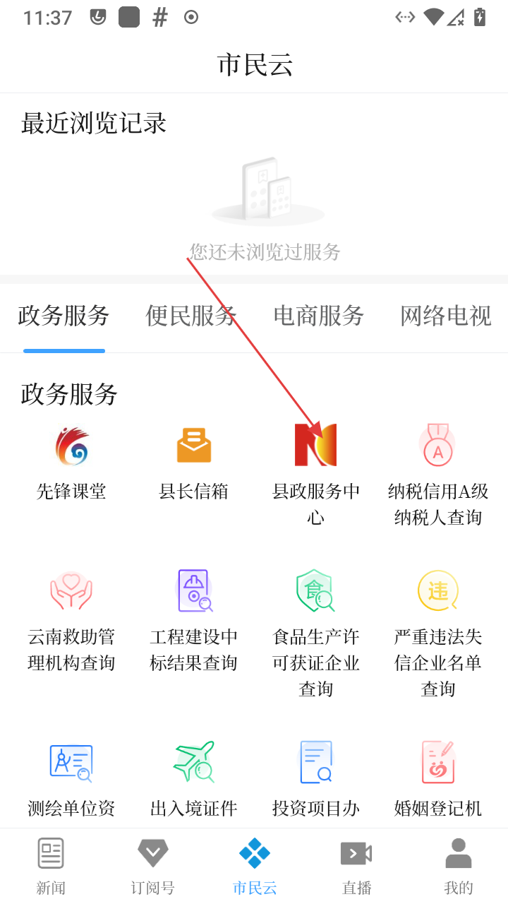 2、进入服务页,选择【县政服务中心】,跳转至云南政务服务网。
