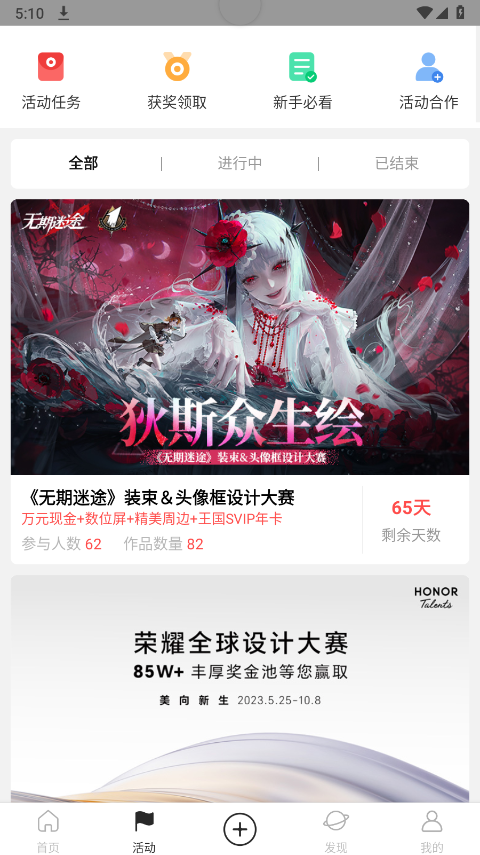 2、当你的画画技术十分成熟后,进入活动界面,选择一个适合你画画风格的赛事。