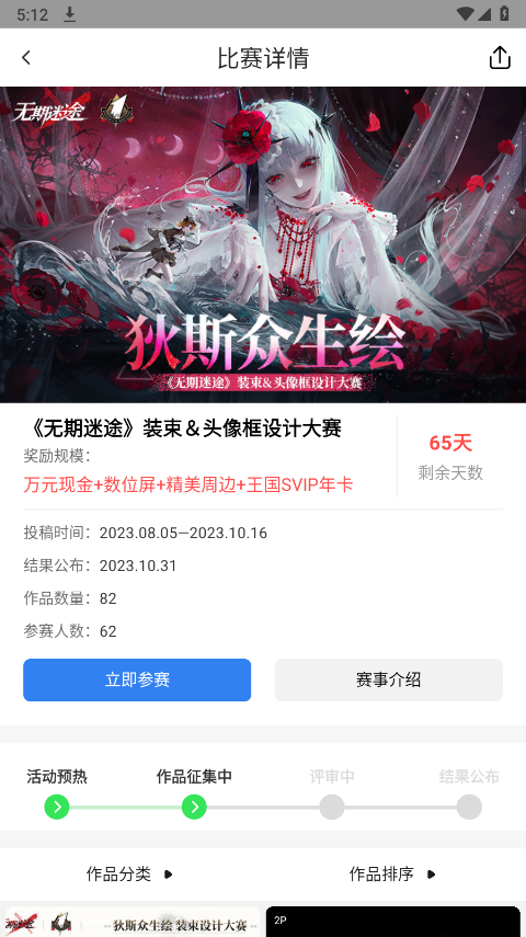 3、比如这个以无期迷途为主题的头像框设计大赛,在参赛之前点击赛事介绍。