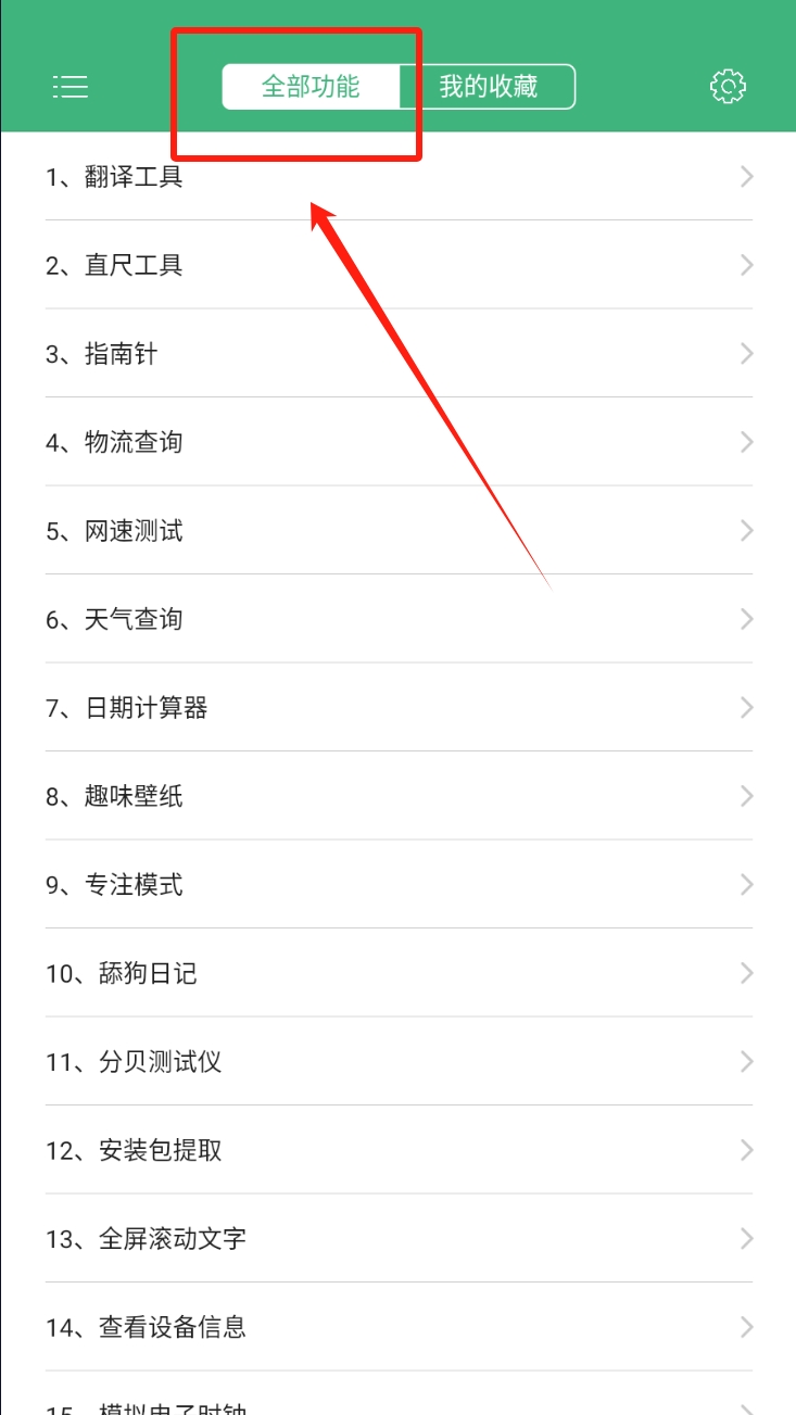 1、打开 APP,点击顶部 “全部功能” 标签查看所有工具列表。