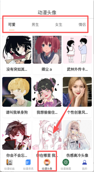 3、点击“动漫头像”图标,选择不同风格的动漫头像。