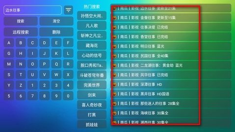 4、搞定这些后回到应用的主页,试着搜个视频瞅瞅,比如输入边水往事,好多结果蹦出来了,又能愉快地追剧啦!