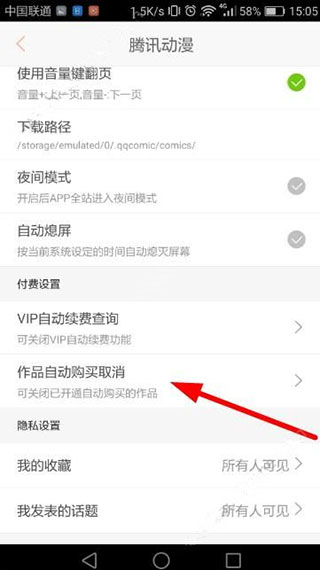 然后点击【作品自动购买取消】,进入设置即可大功告成~