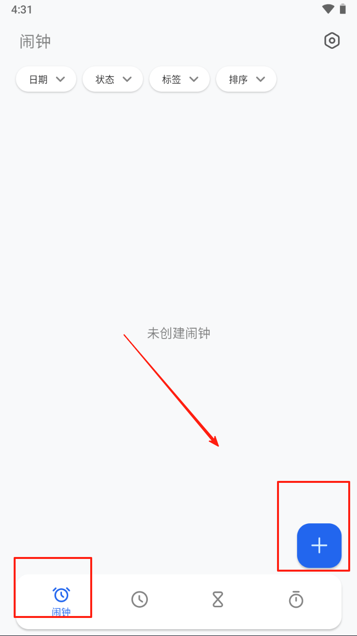 3、创建新闹钟:点击闹钟界面的“+”按钮以添加新闹钟。