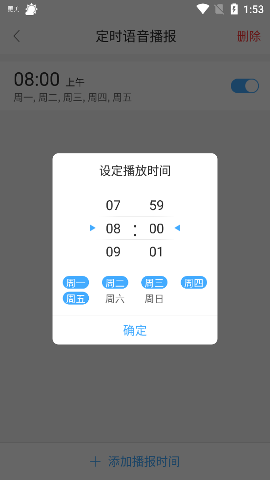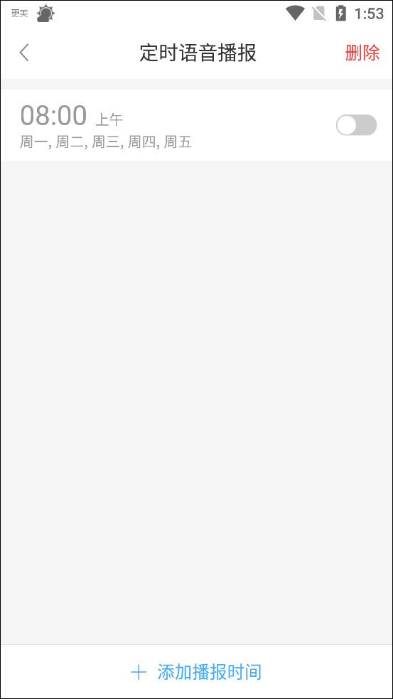 2、下载完成后进入语音播报页面,在这里默认是工作日的早上播报,用户可以自己添加播报时间。