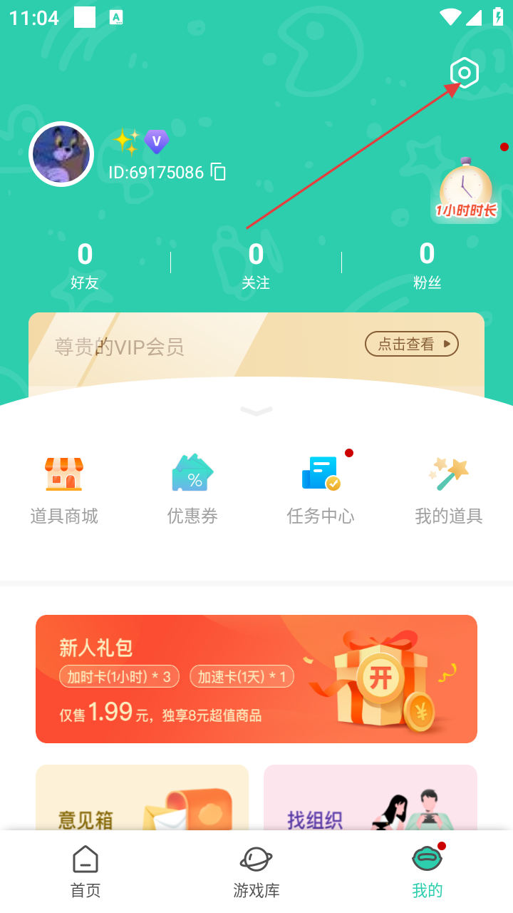 2、进入个人中心后,点击右上角设置图标,进入设置页面。