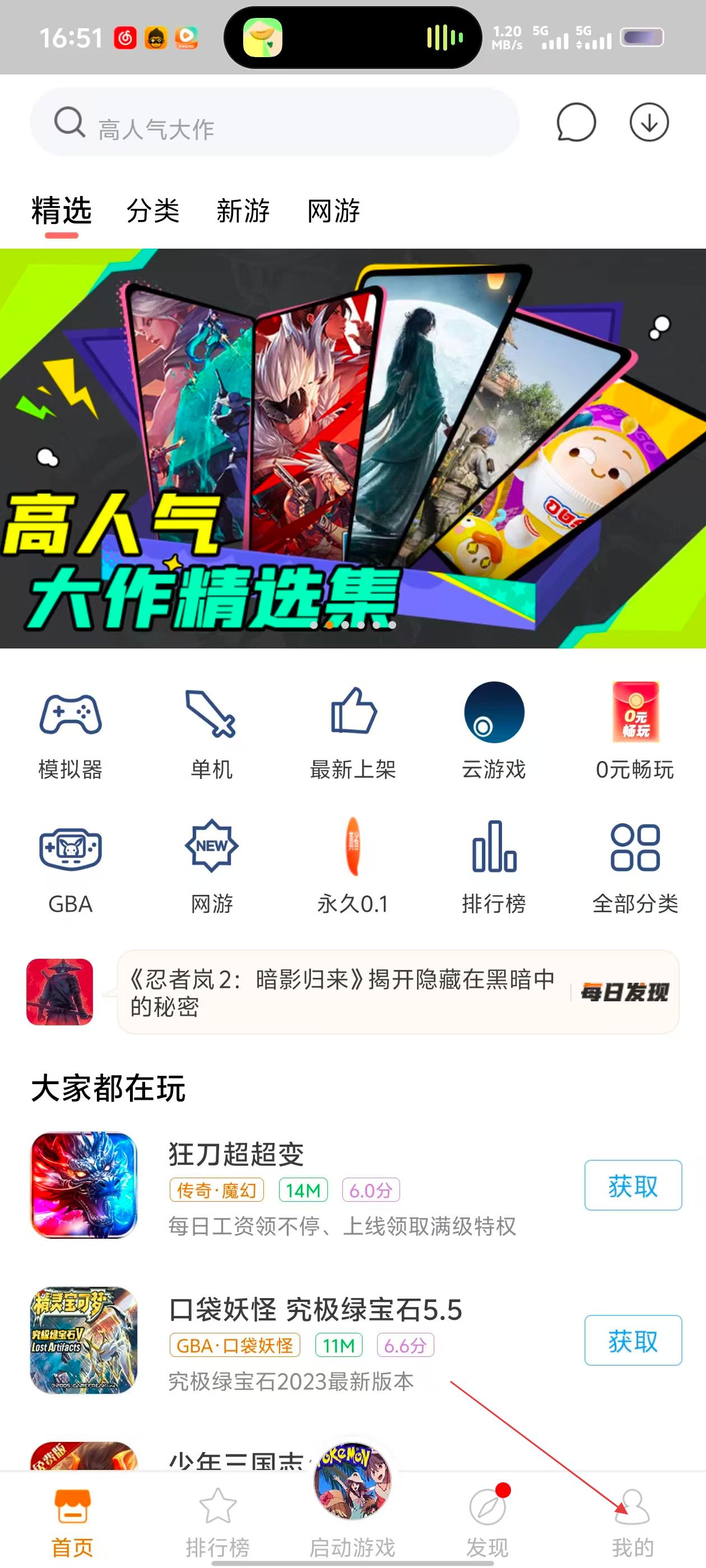 1、在游戏平台首页,点击底部【我的】选项,可进入个人中心页面。