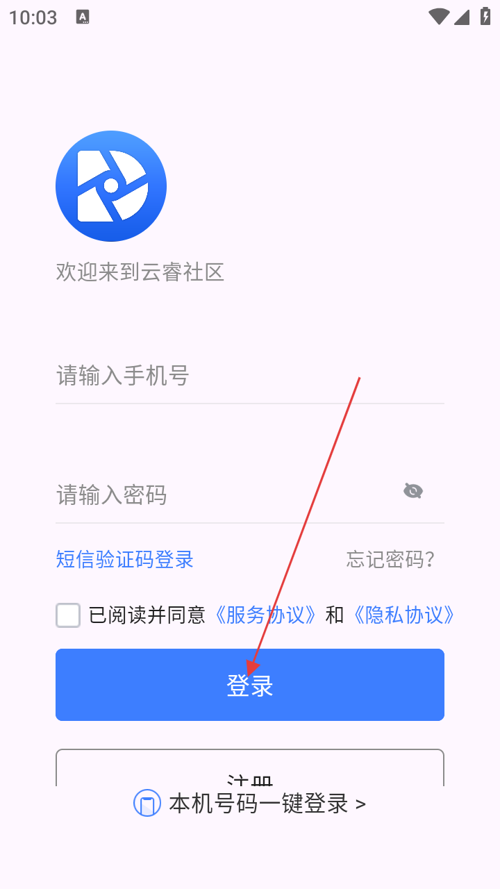 3、进入登录页,输入手机号、密码,勾选协议。