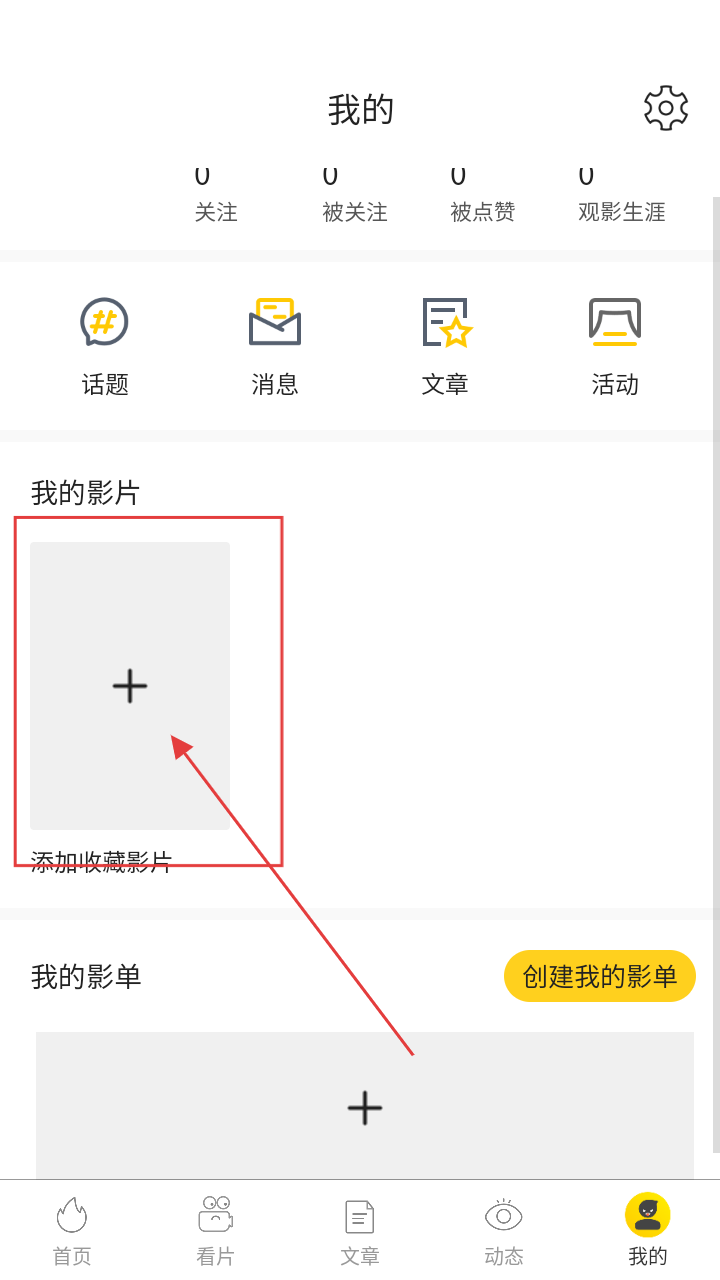 2、在个人中心页面,点【添加收藏影片】,可进入影片收藏页面啦。
