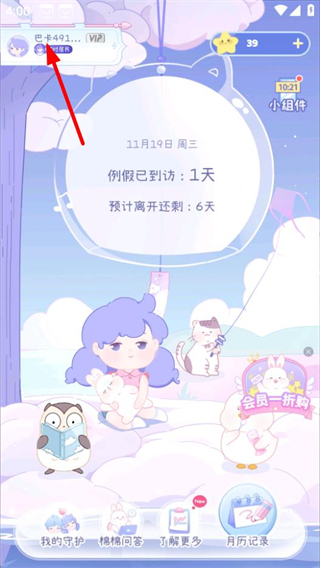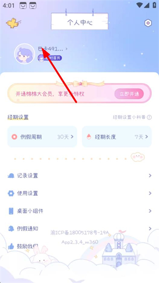 1. 在棉棉月历的首页,轻点左上角的账号区域,即可进入个人中心页面。
